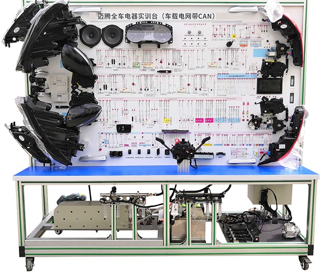 汽車電氣設(shè)備實(shí)訓(xùn)室。汽車電器設(shè)備實(shí)訓(xùn)室包含有汽車燈光系統(tǒng)、車載網(wǎng)絡(luò)系統(tǒng)、全車電器系統(tǒng)、汽車啟動(dòng)系統(tǒng)、汽車空調(diào)系統(tǒng)、全車線路試驗(yàn)臺(tái)、等實(shí)訓(xùn)教學(xué)設(shè)備。該實(shí)訓(xùn)室可以承擔(dān)《汽車構(gòu)造》、《汽車電器設(shè)備》、《汽車電控系統(tǒng)》、《汽車檢測(cè)與診斷》等課程的實(shí)踐教學(xué)任務(wù)。可以用于研究、分析全車電器系統(tǒng)、燈光系統(tǒng)、儀表系統(tǒng)等電器設(shè)備的電路及功能。利用這些系統(tǒng)進(jìn)行實(shí)踐教學(xué),使學(xué)生熟悉汽車電器的結(jié)構(gòu)和工作原理,掌握各個(gè)系統(tǒng)的基本組成電路,掌握主要電路的檢測(cè)方法和系統(tǒng)的故障特征,從而具有一定的檢測(cè)和調(diào)校能力。