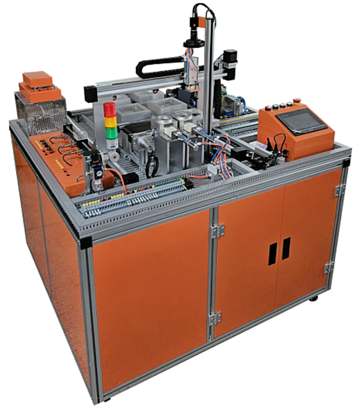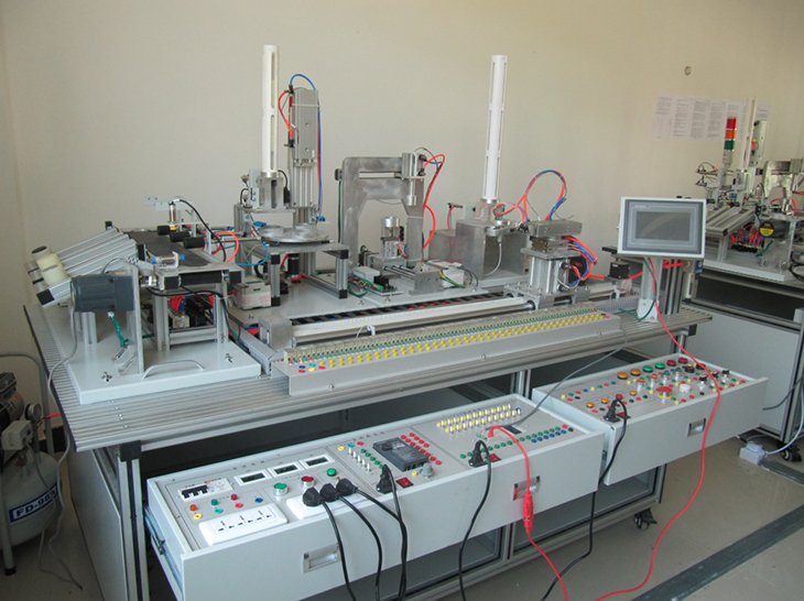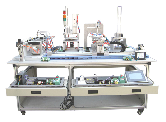 機電一體化技術實訓設備是指機械技術、電工電子技術、微電子技術、信息技術、傳感器技術、接口技術、信號變換技術等多種技術進行有機地結合,并綜合應用到實際中去的技能實訓綜合技術,現代化的自動生產設備幾乎可以說都是機電一體化的設備。自動化生產線實訓考核系統,可以培養和提高學生專業綜合能力,是一種重要的實訓設備。自動化生產線實訓系統、基于PLC技術的自動化生產線實訓考核系統,可以培養和提高學生專業綜合能力,是一種重要的實訓設備。自動化生產線實訓系統整體包括自動供料、檢測傳輸、檢測加工、自動裝配、自動分揀等工序,很好的將機械技術、微電子技術、電工電子技術、傳感測試技術、接口技術、信息變換技術、網.絡通信技術等多種技術有機地結合。該系統中自動分揀站的設計過程,包括系統硬件設計、PLC控制設計和程序設計方法,F代化的自動生產設備的最大特點是它的綜合性和系統性,在這里,機械技術、微電子技術、電工電子技術、傳感測試技術、接口技術、信息變換技術、網絡通信技術等多種技術有機地結合,并綜合應用到生產設備中:而系統性指的是,生產線的傳感檢測、傳輸與處理、控制、執行與驅動等機構在微處理單元的控制下協調有序地工作,有機地融合在一起。可編程序控制器(PLC)以其高抗干擾能力、高可靠性、高性能價格比且編程簡單而廣泛地應用在現代化的自動生產設備中,擔負著生產線的大腦一微 處理單元的角色。因此,培養掌握機電一體化技術,掌握PLC技術及PLC網絡技術的技術人材是當務之急。而一套基于PLC技術的自動化生產線實訓考核設備可以模擬一個與實際生產情況+分接近的控制過程,使學習者得到一個非常接近于實際的教學設備環境,從而縮短了理論教學與實際應用之間的距離。自動分揀站需完成對上一單元送來的已加工、裝配的工件進行分揀。使不同顏色的工件從不同的料槽分流的功能。當輸送站送來工件放到傳送帶上并為入料口光電傳感器檢測到時,即啟動變頻器,工件開始送入分揀區進行分揀。上海碩博弘揚大國工匠精神, 發展職業教育,應用教學設備,為企業培養高技能人才,而專業生產:光機電一體化(自動生產線)實訓裝置、灌裝自動化生產線實訓裝置、工業自動生產線實訓裝置 、工業控制模擬實訓裝置 、機電一體化組合實訓平臺 、機電一體化綜合實訓考核裝置、自動化生產安裝與調試實訓裝置 、光機電一體化高速分揀實訓系統 、典型機電設備安裝與控制實訓裝置、模塊式柔性自動環形生產線實驗系統(帶機器人工程型)、立體停車庫實物教學實驗裝置、機電一體化柔性生產線加工實訓系統(5站)、網絡型模塊式柔性自動化生產線實驗系統、模塊式柔性自動環形生產線實驗系統(工程型)、柔性生產制造實驗系統(工程型)、現代物流倉儲自動化實驗系統、運動實訓裝置、循環搬運自動控制實訓裝置、平面雙軸運行控制實訓裝置、工業機械手實訓裝置、物料分揀實訓裝置、機械手實訓裝置 、立體倉庫實訓裝置、十字路口交通燈實訓系統、機電液氣一體化綜合實訓裝置、光機電一體化高速分揀實訓系統、步進伺服控制綜合實訓平臺、光機電氣一體化控制實訓系統、 光機電一體化綜合實訓考核裝置、光機電一體化實訓考核裝置、光機電一體化實訓考核裝置、光機電氣一體化控制實訓系統、自動生產線拆裝與調試實訓裝置、柔性自動化生產線實訓系統。