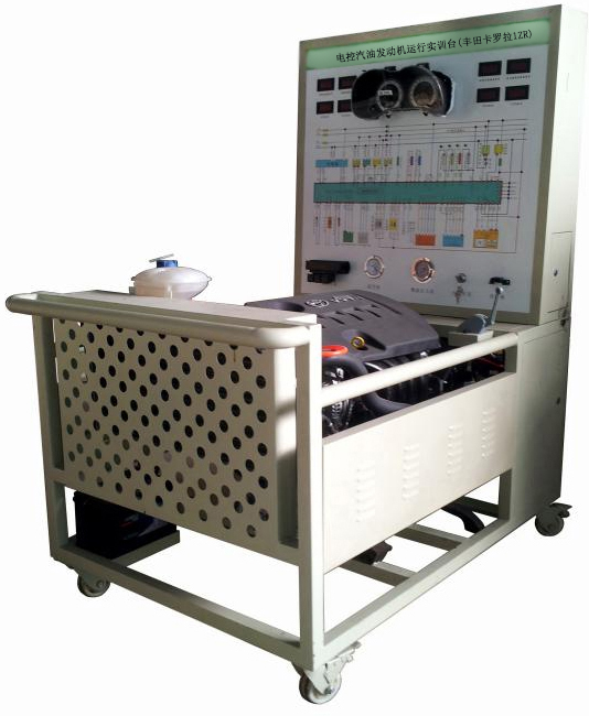 該設備采用翻新豐田卡羅拉1ZR電控汽油發動機總成及運行附件的固定臺架和運行檢測控制面板臺架兩部分組成。