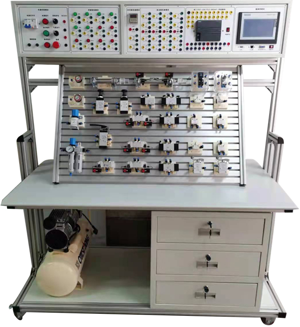 PLC控制氣動實訓(xùn)裝置是我公司根據(jù)高校機電一體化對氣、電、液控制的教學(xué)大綱要求,我公司PLC控制氣動實訓(xùn)設(shè)備的優(yōu)點,采用了開放型綜合實訓(xùn)臺結(jié)構(gòu),廣泛征求專家教授與老師的意見,經(jīng)不斷創(chuàng)新改進(jìn)研制而成的。是目前集氣動控制技術(shù)、液壓傳動控制技術(shù)以PLC控制的理想的綜合性實訓(xùn)設(shè)備。實訓(xùn)可以讓學(xué)生直觀、感性地對比、了解氣、電、液各自具有的特點、特色、及優(yōu)缺點等。