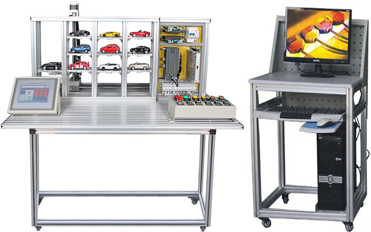 本立體倉庫實訓系統可以完成車輛的手動和自動迫車、車位信息狀態顯示。它主要包括以下幾個部分:鋁型材臺面、觸摸屏、倉庫本體、車盤、電氣板、氣動二聯件、按鈕盒和二維運動機構等。