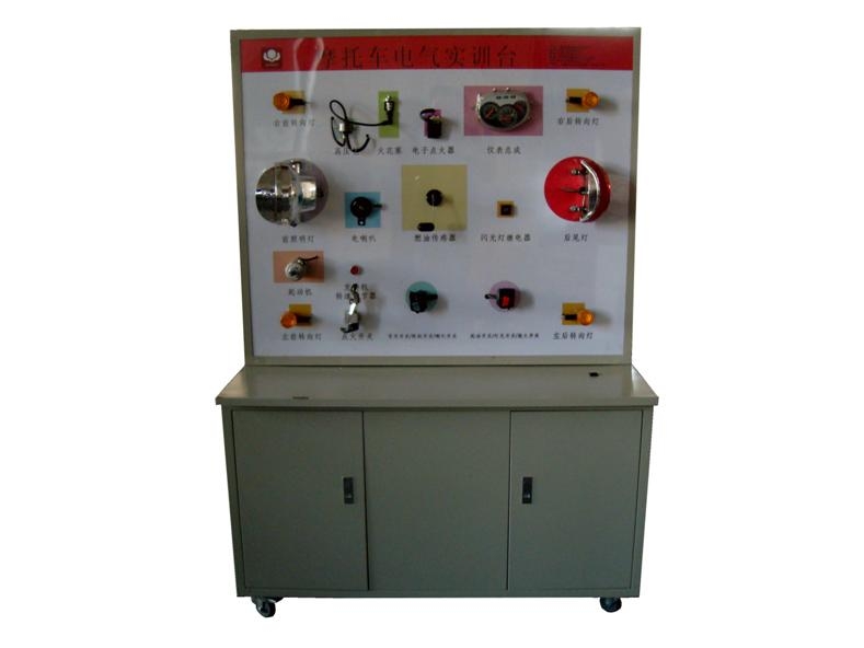 摩托車整機總成、起動運行所有相關(guān)的原車附件、故障模擬考核和排除系統(tǒng)、原車電路原理圖板及檢測端子、蓄電池、控制面板柜、可移動臺架、臺架電源總開關(guān)、臺架操作說明書、實驗指導(dǎo)書等附件。