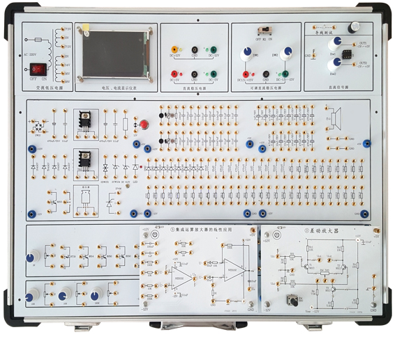 創新型模塊化模擬電路實驗箱由全鋁合金箱體、高性能線性電源和實驗電路板組成。其中實驗電路既可以采用固定功能模塊方式,也可以自行搭建實驗電路,電路原理和元器件符號清晰,實驗用元器件全部焊裝在線路板的反面,安全可靠,不易損壞。本實驗箱適用于本專院校所有電類和非電類專業《模擬電子技術》、《電子線路》等課程的實驗教學。