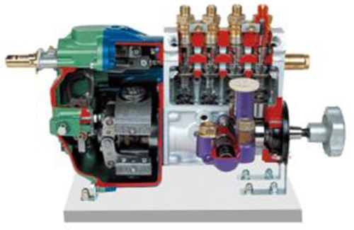 1.采用翻新柴油機6缸柱塞式高壓噴油泵一調速器總成(附件齊全)進行解剖,各零部件齊全,能夠全面的展示總成的內外結構。