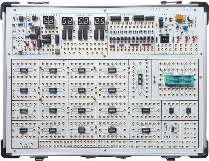 數字電路實驗箱,數字電路實驗室,數字邏輯實驗箱、數字電路實驗裝置、主要用于開設電子信息科學與技術、自動化和機電一體化三個專業的《數字電子技術實驗》或《數字電子技術基礎實驗》課程,該課程是相應的《數字電子技術》或《數字電子技術基礎》理論課程中重要的實踐環節。課程的任務是通過實驗,使學生加深對所學理論課程內容的理解,激發學習興趣,從實踐上驗證所學的理論知識;培養學生的實際動手能力、解決問題能力和設計數字電子電路的初步能力。數字電路實驗箱由鋁木合金箱體、開關電源、常用信號源和實驗電路區組成。其中實驗電路區采用全開放模式,可根據需求靈活配置實驗電路,以滿足不同層次學生的教學實驗要求。
