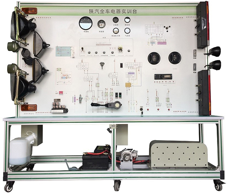 該設備采用泰安TA4360柴油機整車電器實物為基礎,充分展示汽車儀表系統、燈光系統、雨刮系統、喇叭系統、發動機電器系統、起動系統和充電系統等汽車電器各系統的組成結構和工作過程。