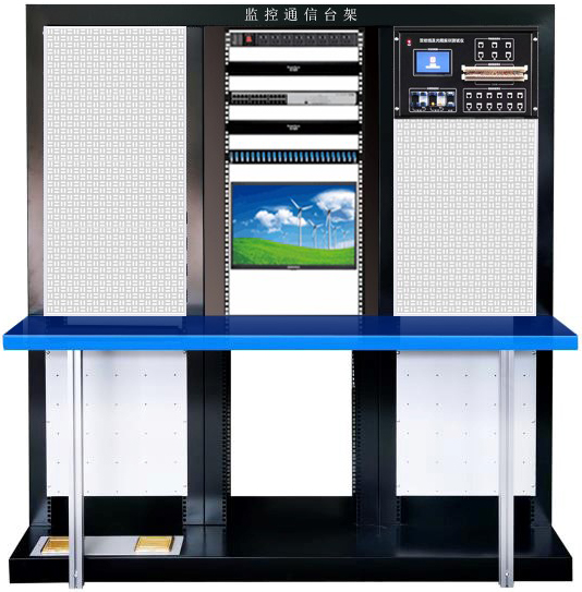產品規格:長 2200mm* 750mm* 1800mm         AC220V/800W,滿足 2-4 個學生同時進行實訓。實訓臺 主體上體,四聯 19 英寸陣列設計。配置有總電源配電模組、工控主機、雙顯示器、音箱、直流配電模組等。