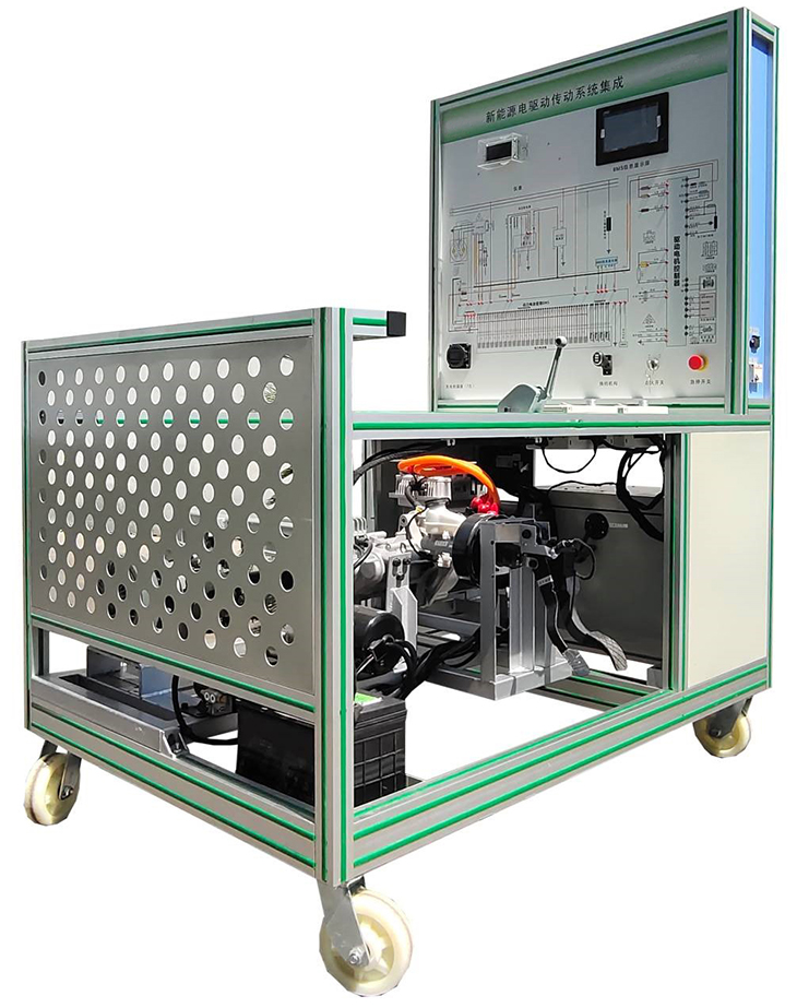 電驅(qū)動系統(tǒng)實訓(xùn)臺選用純電動車交流異步電機(jī)與控制器、智能工況模擬系統(tǒng)、鋰電池及管理系統(tǒng)(BMS)、儀表、傳動系統(tǒng)、電子真空液壓制動系統(tǒng)、模擬加載控制器、加載器、教學(xué)板等真實器件制作的實驗實訓(xùn)臺架,可完成動力驅(qū)動系統(tǒng)相關(guān)的實驗實訓(xùn)內(nèi)容。適合于各類院校對電驅(qū)動傳動系統(tǒng)、鋰電池及管理系統(tǒng)(BMS)等系統(tǒng)理論和維修實訓(xùn)的拆裝與維護(hù)、結(jié)構(gòu)與原理認(rèn)知、系統(tǒng)操作、功能動態(tài)演示、故障檢測與診斷教學(xué)需要。