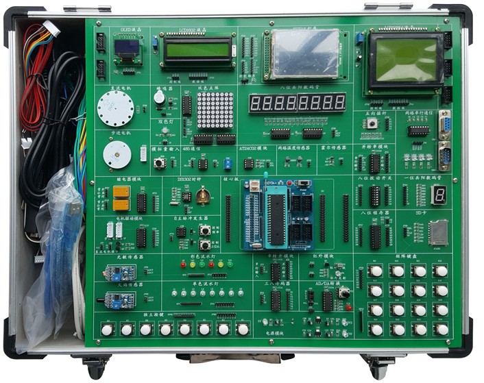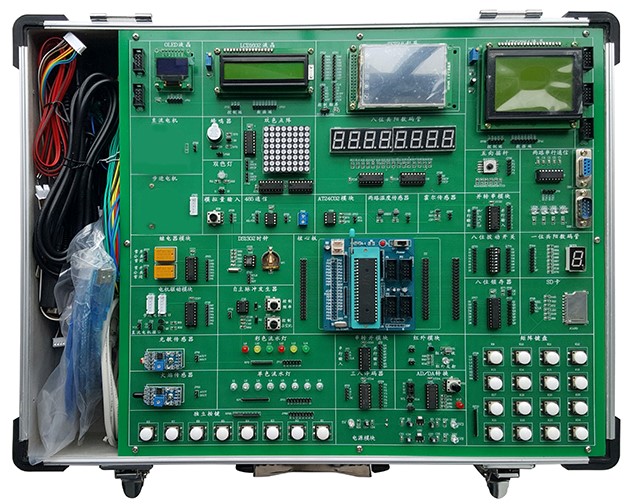 單片機實訓實驗臺,單片機技術實驗箱,單片機與嵌入式實驗室,萬能單片機實驗開發系統、單片機開發應用技術綜合實驗裝置是電子與通信、自動化信息工程技術、計算機基礎課實訓室等課程實驗實訓。單片機實驗室是專為電子、通信和自動化等專業而設立,單片機實驗室設備適應《微機原理與接口技術》《單片機原理與應用》課程的需要,滿足了正常實驗教學的同時,設立了開放性實驗室功能,充分調動了學生學習的積極性,方便了學生和老師實驗程序的編制和調試。單片機實訓設備主要承擔《單片機原理》、《微機接口與技術》等相關課程的實驗、課程設計及畢業設計。