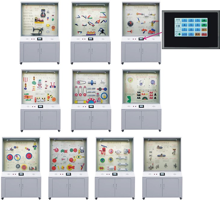 根據(jù)全國技工學校機械類通用教材《機械基礎》示教陳列柜是一套電化教學設備。本陳列柜共分十個柜,陳列柜通過機械模型或實物,配合相應的圖文資料,形象地展示與解說機械基礎的基本知識,加強學生對通用機械基礎的類型、結構特點及其設計的感性認知,為進一步學習機械基礎奠定基礎。