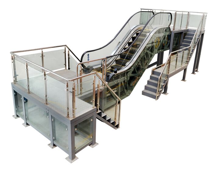 透明教學自動扶梯模型,適用于職業院校、中職院校電梯技術專業學員進行自動扶梯梯級拆裝、操縱和維修保養實訓教學訓練。扶梯模擬實訓裝置采用優質方管焊接密紋噴塑組裝成扶梯桁架,梯級踏板系統、扶手帶系統、曳引機系統,設備臺架、安全檢測系統,電氣控制控制系統等。