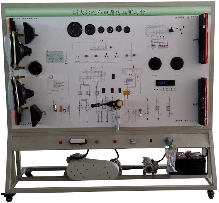 2.設備面板采用耐創擊、耐污染、防火、防潮的高級鋁塑板,表面經特殊工藝噴涂底漆處理;面板打印有永不褪色的彩色電路圖;學員可直觀對照電路圖和實物,認識和分析汽車整車電器各系統的工作原理。