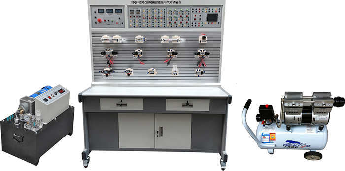 該實訓臺為鐵質雙層亞光密紋噴塑結構。美觀大方,堅固耐用,操作方便;九渲脼椋簹鈩訉嵱栐1;氣動實訓PLC控制模塊1套;低噪音空壓機1臺;液壓實訓元件1套,液壓實訓PLC控制模塊1套;液壓實訓泵站1臺。(計算機根據學校要求另行配置)